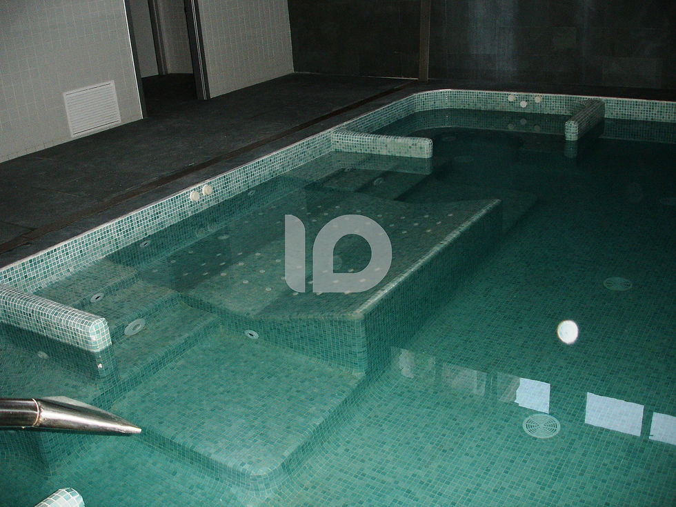Piscinas de vaso de hormigón armado, proyectado (GUNITA),sobre encofrado perdido de ladrillo h/d, incluso capa de gravade machaqueo. Revestimiento vítreo tipo gresite de 25x25mm tomado con mortero de cemento cola. Construcción dealbardilla “in situ”. Caseta para elementos de filtración. Instalación de colectores con tubería de presión de 10 atmósferas en diferentes diámetros. Cuadro eléctrico para funcionamiento automático y manual con anillo equipotencial mediante cable de cobre desnudo unido picas.